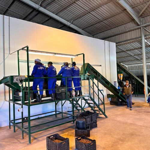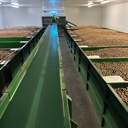 With our continues growing quantities year after year, we have incorporated a controlled storage space. Here we size and bag our dried nuts for further storage. This extends the shelf life of the nuts, allowing for longer storage periods without compromising their quality, at the same time making space for more nuts to go through the drying system.